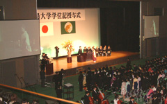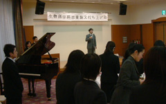 卒業生と教職員が一同に集い、一人一人が学科長から手渡しで証書を受け取ります。