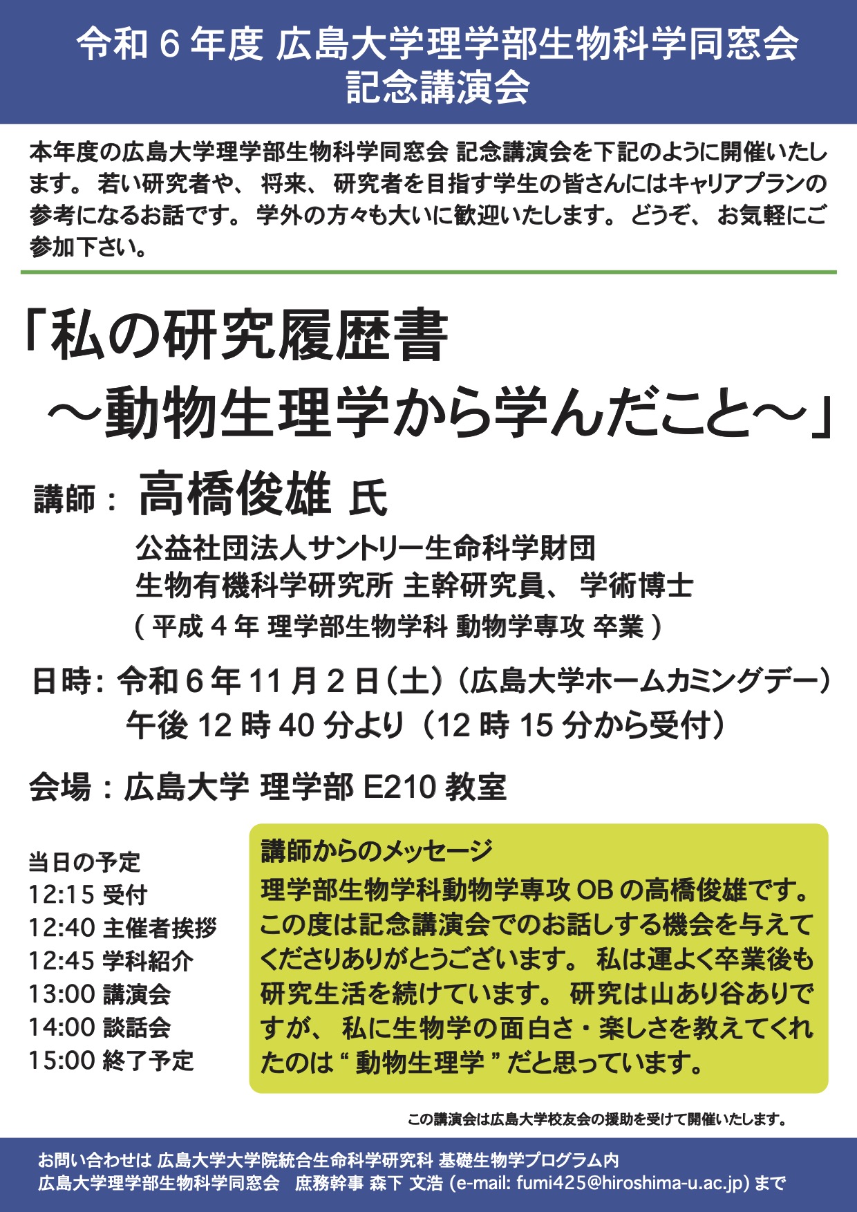 日時: 令和6年11月2日(土) 広島大学ホームカミングデー